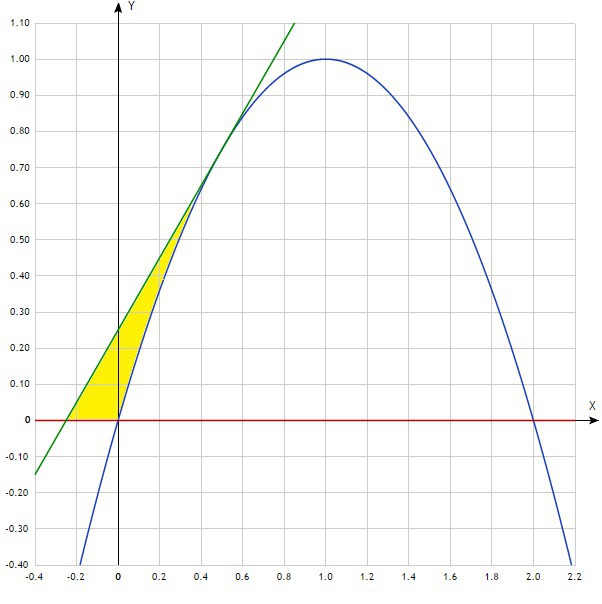 Найдём касательную к параболе в точке (0,5;0,75). Уравнение касательной имеет вид: