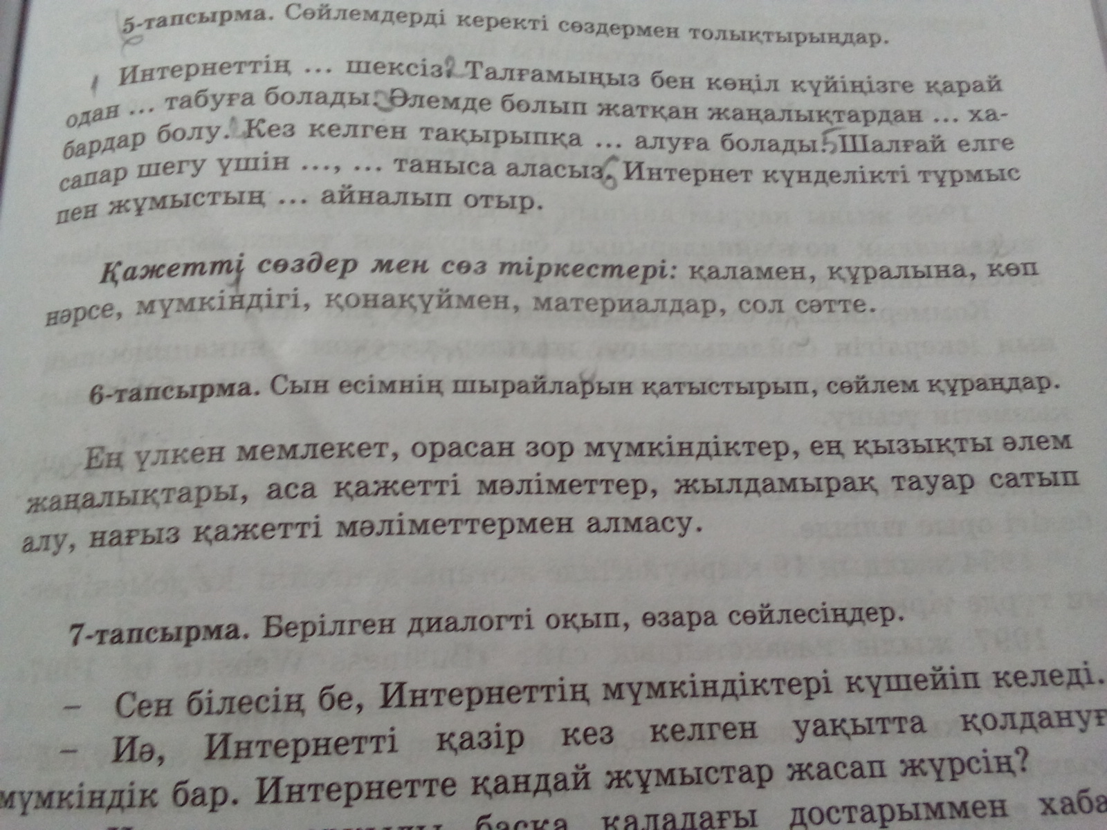 Ол әлемдегі ең үлкен мемлекетте тұрады. Қазір әлемдегі жаңалықтарды білуге орасан зор мүмкіндіктер бар. Ең қызықты әлем жаңалықтарын қазір интернеттен оқимын. Аса қажетті мәліметтерді де осы жерден табамын. Ақшаның бар кезінде жылдамырақ тауар сатып алу керек. Нағыз қажетті мәліметтермен пікір алмастық.