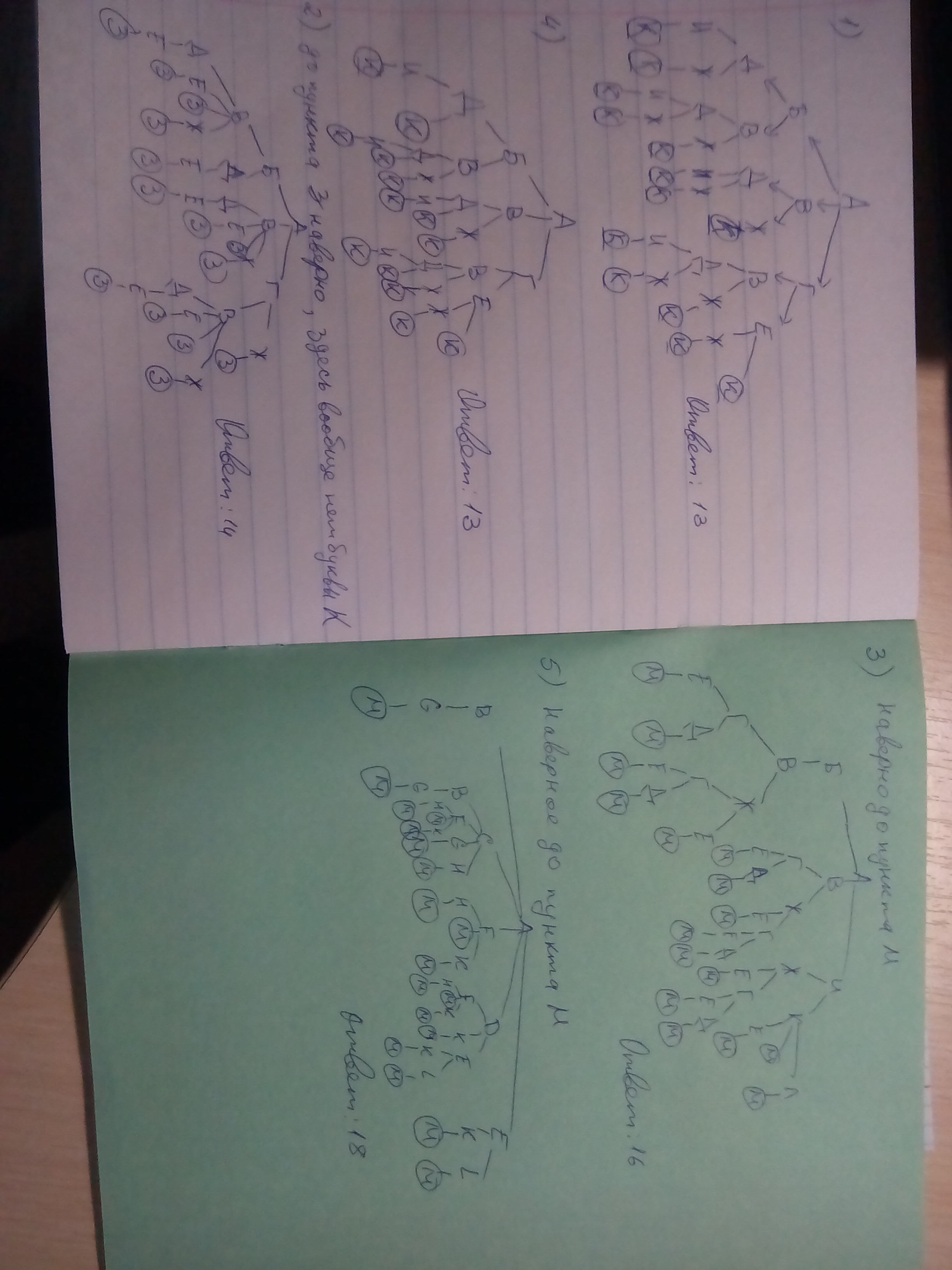 вот как я делаю,но там рядом со всеми рисунками есть ответы,и плюс во втором я думаю что до пункта З,в третьем и пятом до пункта М