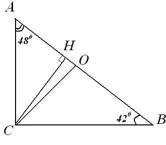 Угол АСН=180-(90+48)=42⁰