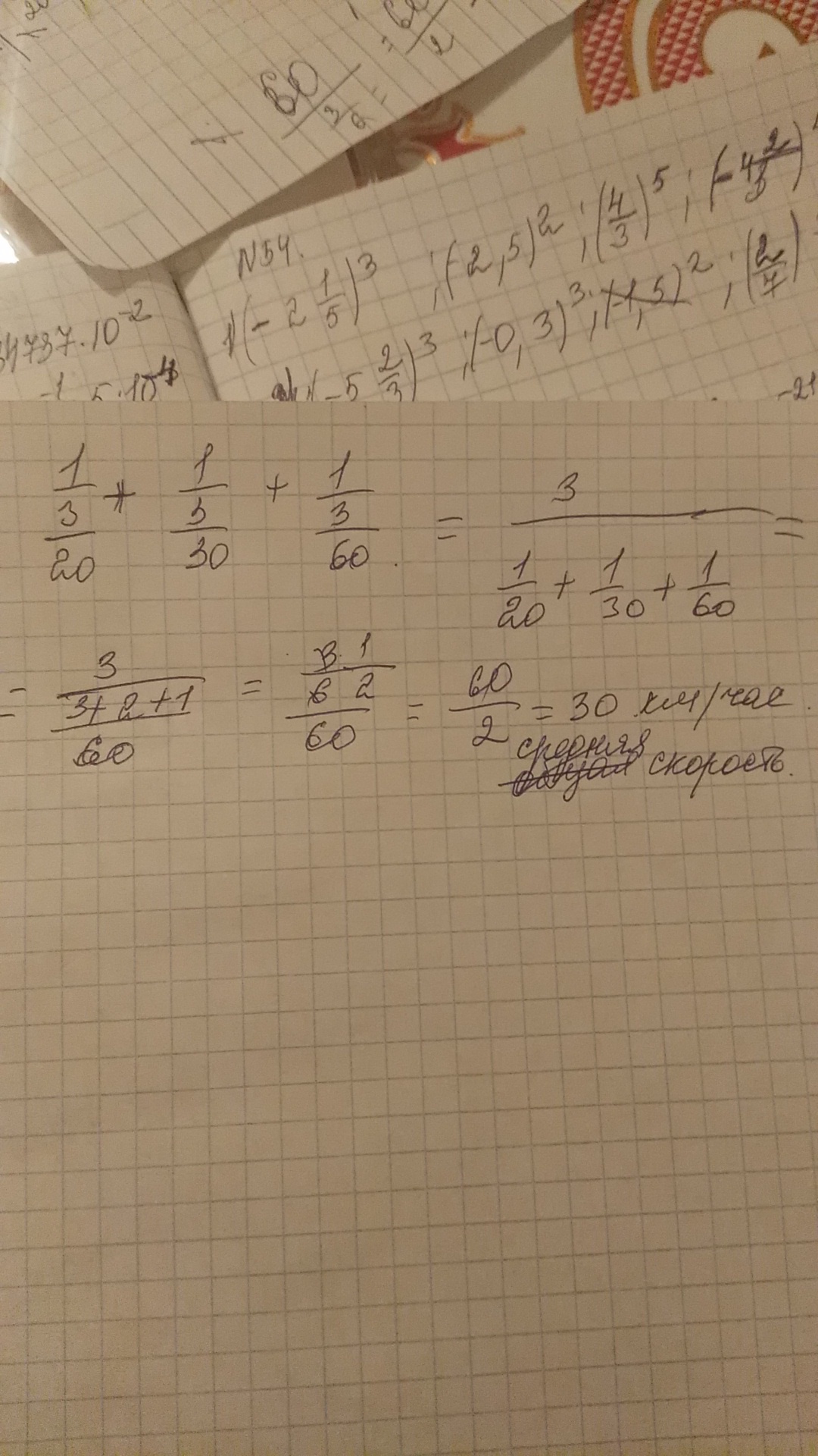 Автобус третью часть пути шел со скоростью 20 км/ч, половину оставшегося пути со скоростью 30 км/ч, а остальной путь со скоростью 60 км/ч. Определить среднюю скорость на всем пути.