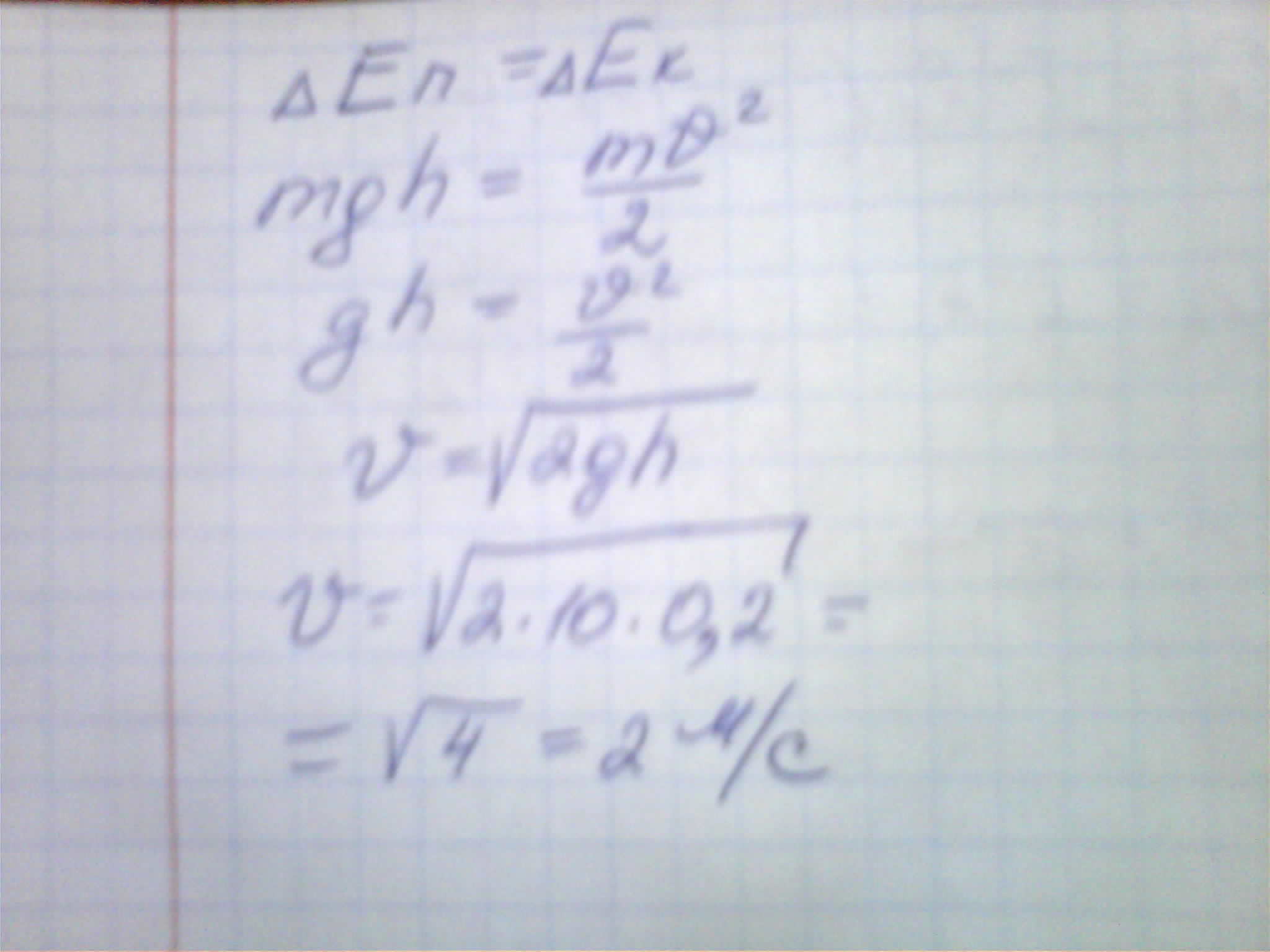 груз подвешен на нити и отклонен от положения равновесия так что его высота над землей увеличилась на 20 см.Примерно с какой скоростью тело будет проходить положение равновесия при свободных колебаниях?