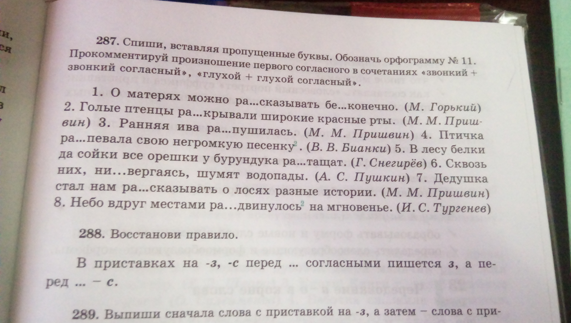 Рассказывать, бесконечно, раскрывали, разпушилась, распевала, разтащат,низвергаясь, рассказывать, раздвинулось)