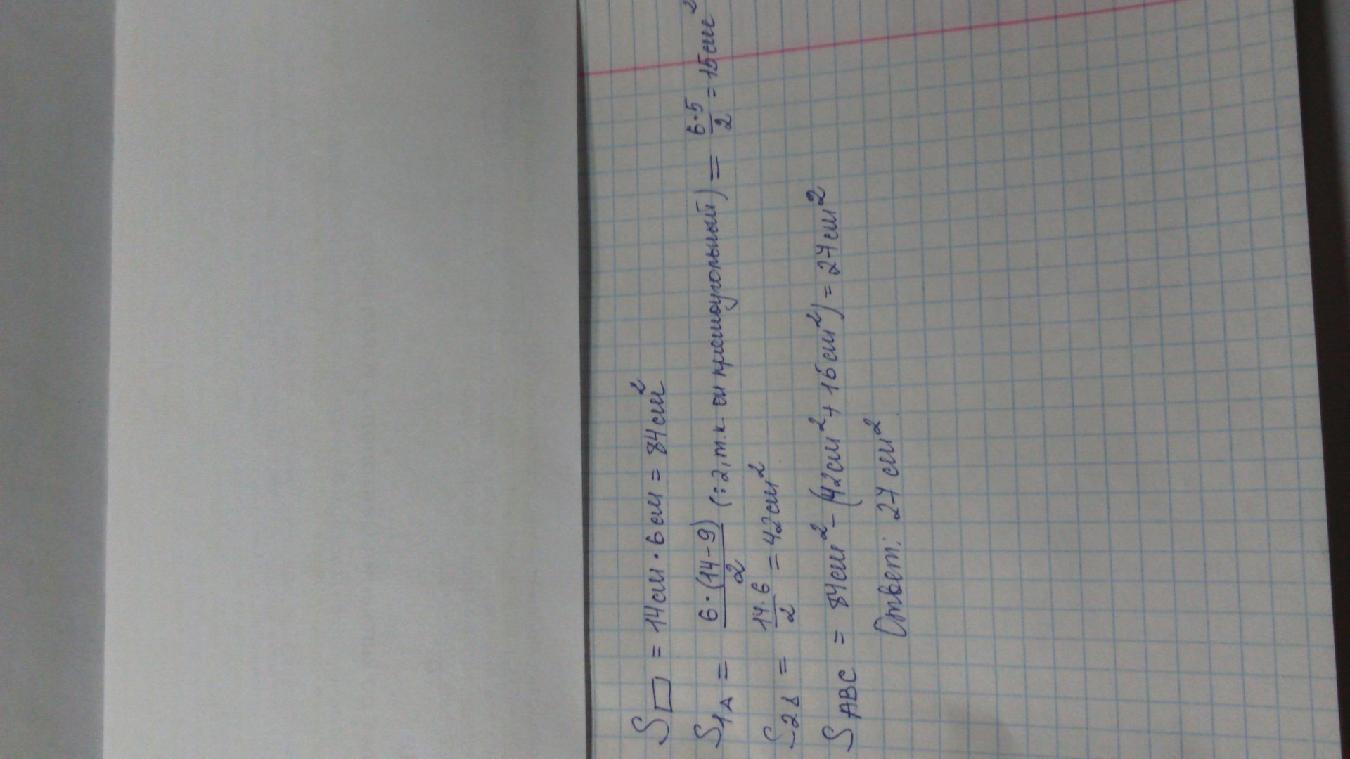 Чтобы найти площадь данного треугольника, мы нпйдем площади двух незаштрихованных треугольников и их сумму вычтем из площади прямоугольника