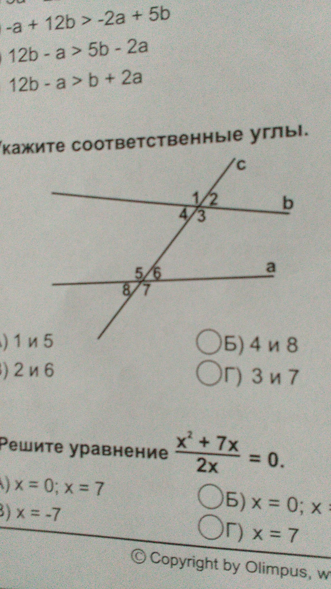 Соответственные углы 1 и 5, 4 и 4, 2 и 6, 3 и 7