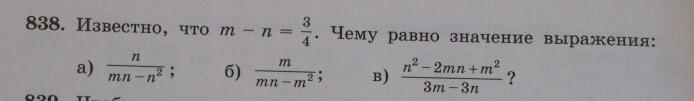 в)n^2 - 2mn + m^2/ 3m-3n = (n-m)^2/3(m-n) = (m-n)^2/3(m-n) = (m-n)/3 = 3/4:3 = 1/4