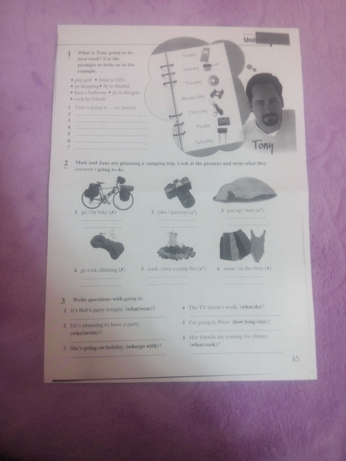 Tony is going to the gym Wednesday