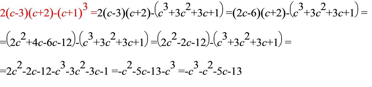 преобразуйте в многочлен выражение: 2(с-3)(с+2)-(с+1)^3 пожалуйста помогите решить, зараннее спасибо