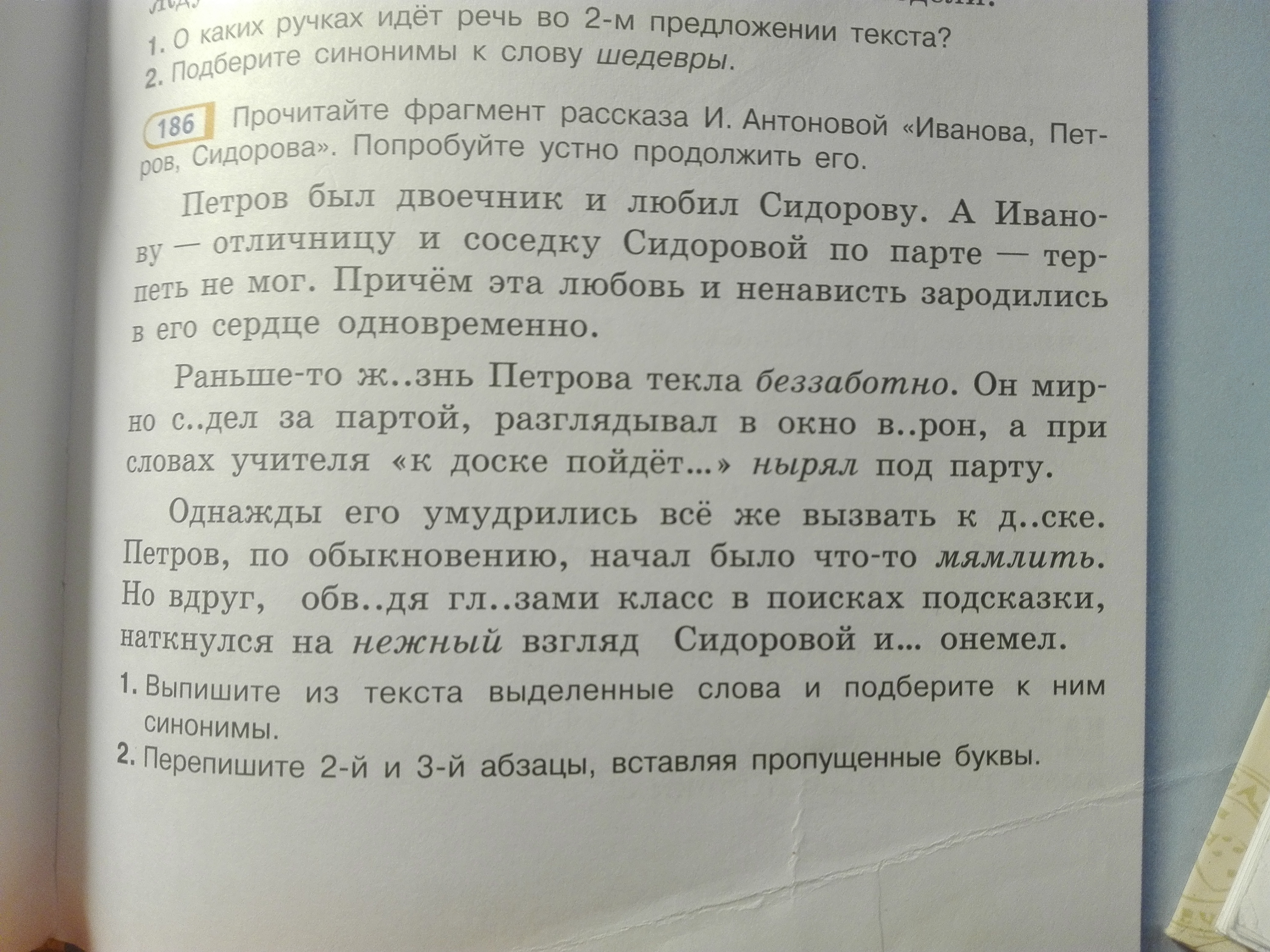 Беззаботно - беспечно, нырял - погружался, мямлить - бубнить, нежный - умильный.
