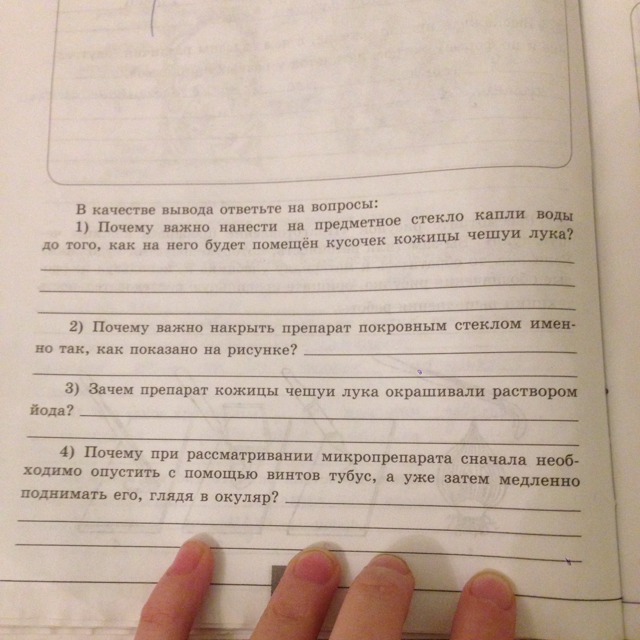 1. Чтобы кусочек кожицы лука не упал, ведь вода зафиксирует его, как клей.