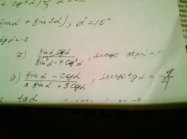 действия с синусами и косинусами, тангенсами . девятые задания на всех снимках. помогите пожалуйста . хотя бы подскажите , как решать .