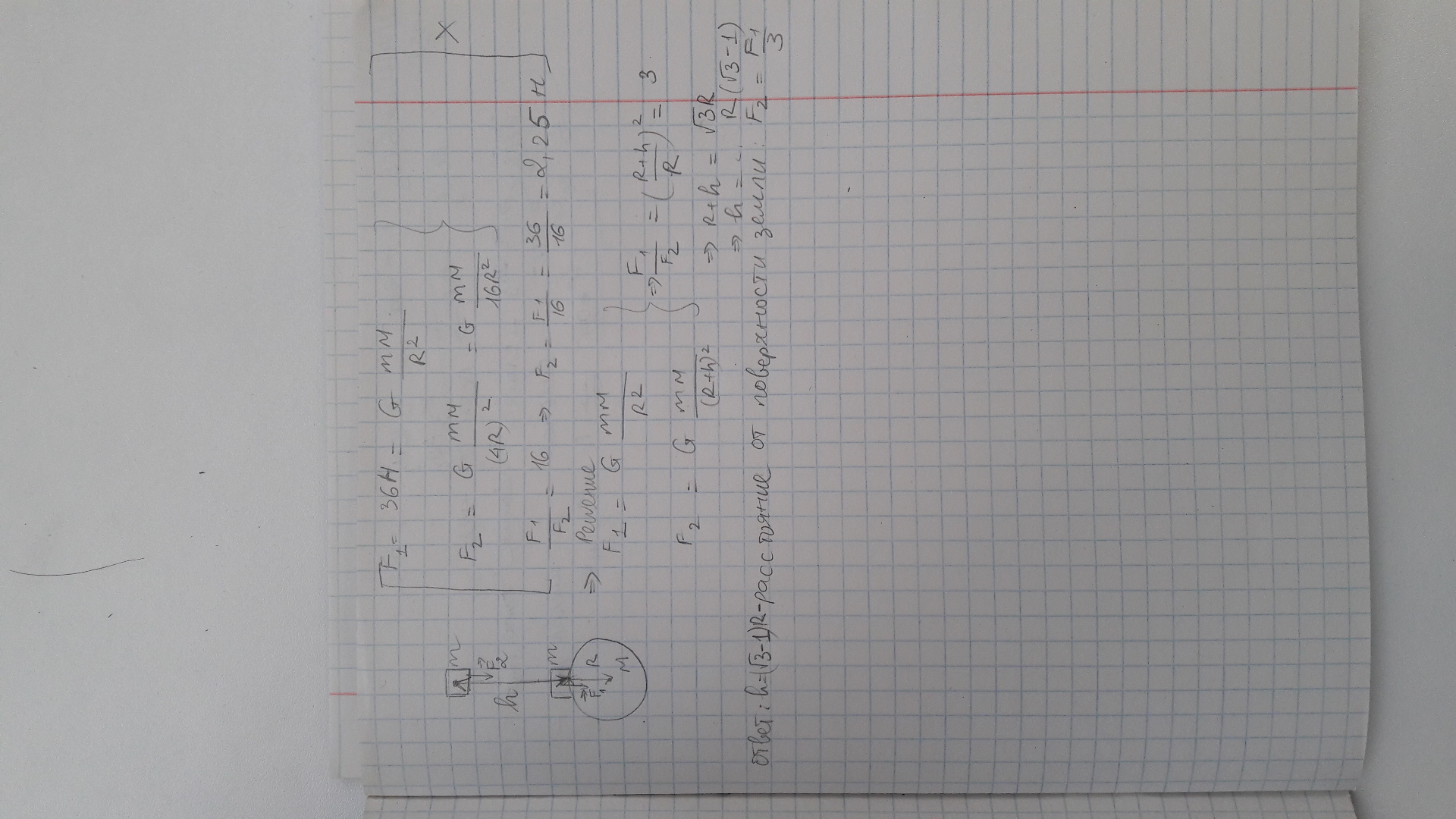 На каком расстоянии от Земли сила всемирного тяготения,действующая на тело, будет в три раза меньше,чем на поверхности Земли?Радиус Земли принять