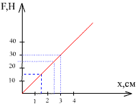 На мал. зображено графік залежності сили пружності від подовження гумового шнура. На скільки треба розтягти шнур, щоб виникла сила пружності 25 н?