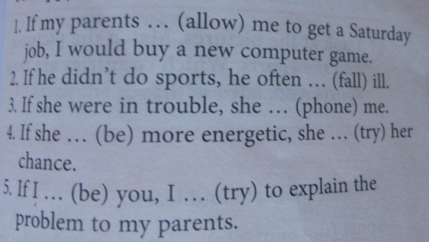 1 1. allowed 2. would fall 3. would phone 4. were, would try 5. were, would try