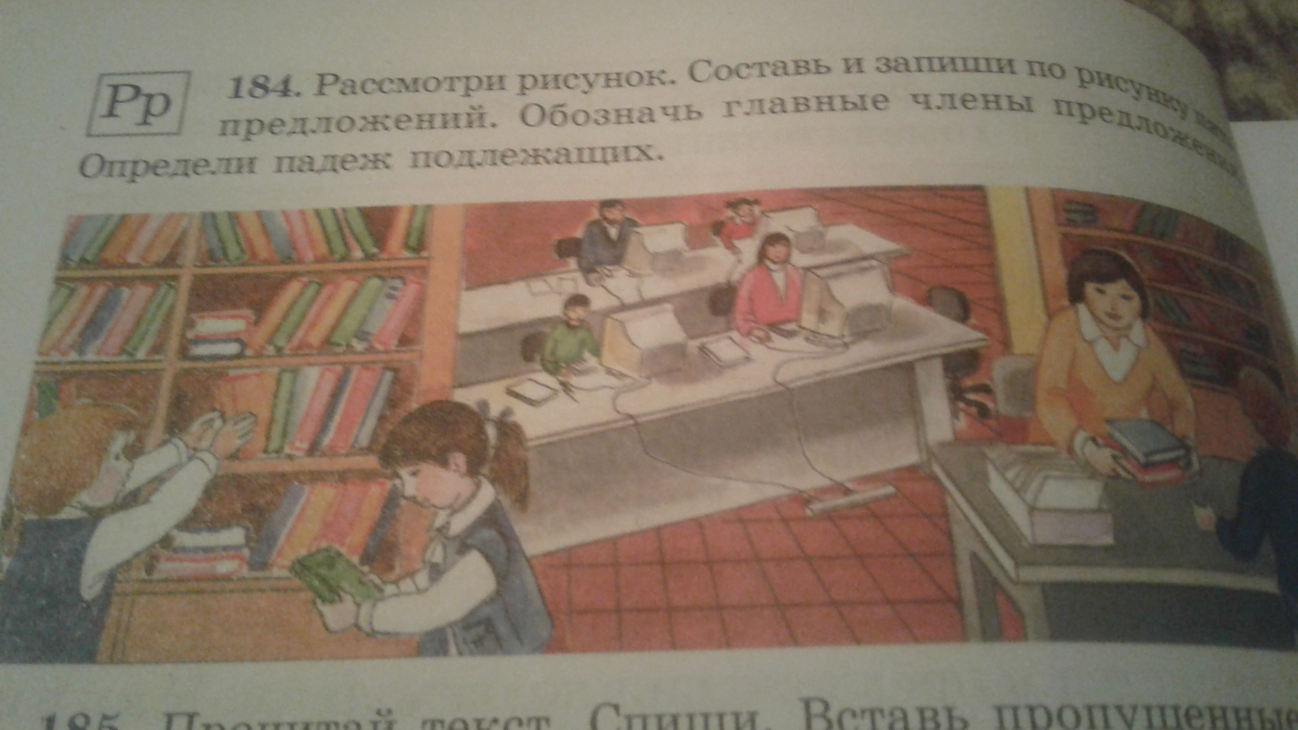 Девочка выбирает книгу,главные Девочка выбирает (и.п) Библиотекарь выписывает книги .библиотекарь выписывает и.п.Люди работают в библиотеке (люди работают и.п)Библиотека находится в школе(Библиотека находится И.п) Дети занимаются в школьной библиотеке (дети занимаются и.п)