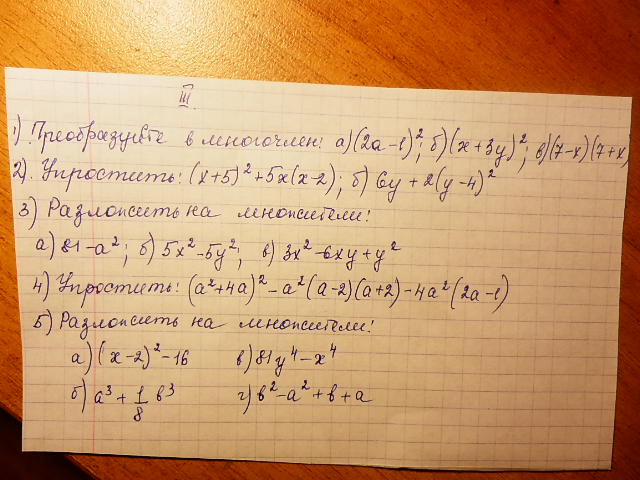 в) думаю что первый член должен быть 9х²,а не 3х².А то не получается свернуть по формуле квадрат разности.