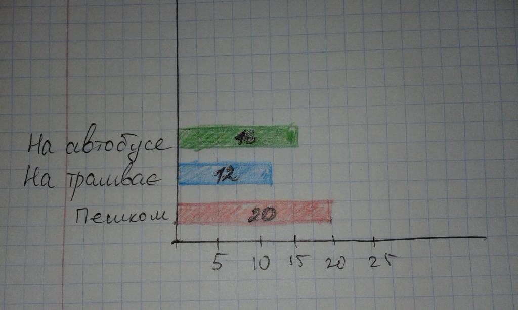в таблице представлена информация о том как учащиеся младших классов добираются до школы Используя эти данные постройки диаграмму