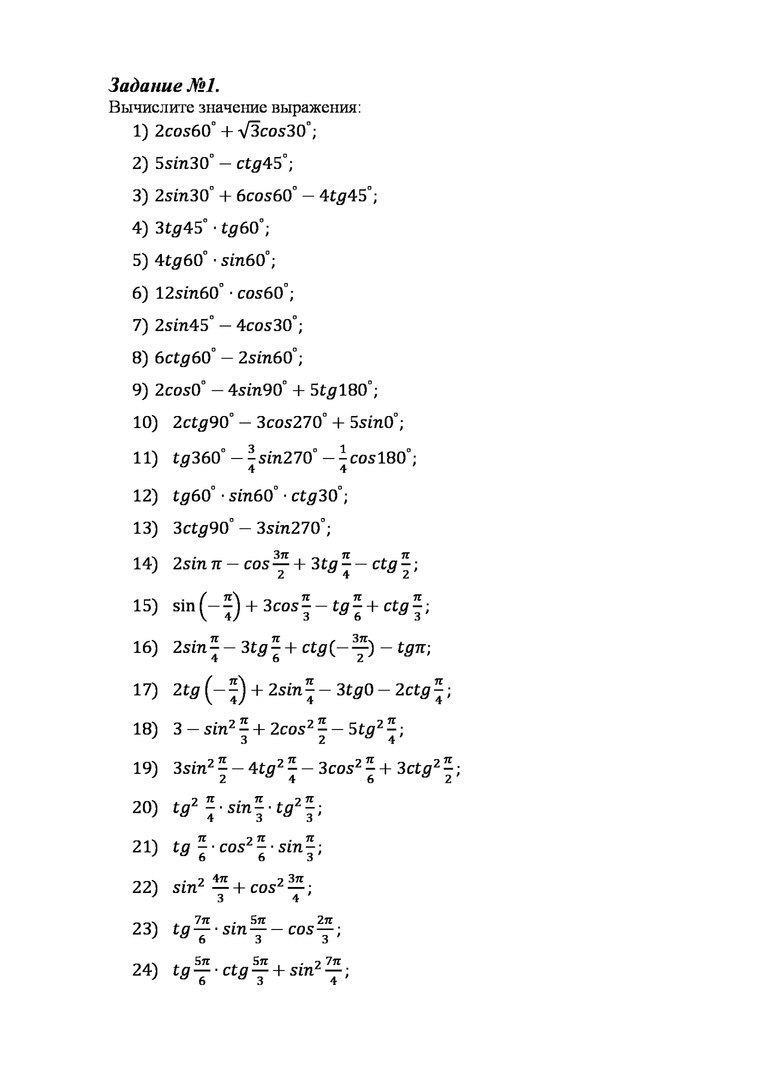 3sin²π/2-4tg²π/4-3cos²π/6+3ctg²π/2=3*1²-4*1²-3*(√3/2)²+3*0²=