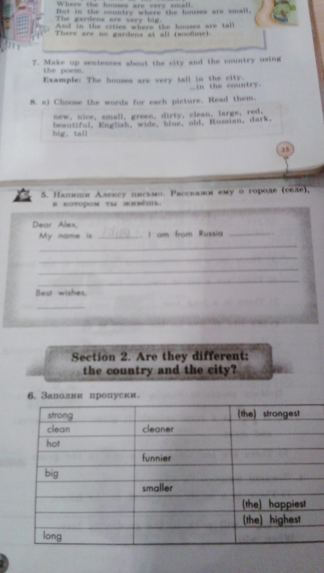 Dear Alex, My name is (твоё имя).I am from Russia.I live in (твоё село).This is a (маленькое или большое твоё село) but pleasant village. In (твоё село), small streets.In my village many houses. I think my village is the most beautiful village in the world. Best wishes, (Твоё имя и фамилия)