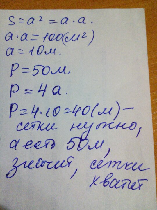 площадь участка квадратной формы равна 100 квадратных метров Хватит ли 50 метров сетки чтобы поставить забор на этом участке огороде фильм со всех сторон на закрась рамку с правильным ответом а затем проверить его с помощью вычисления