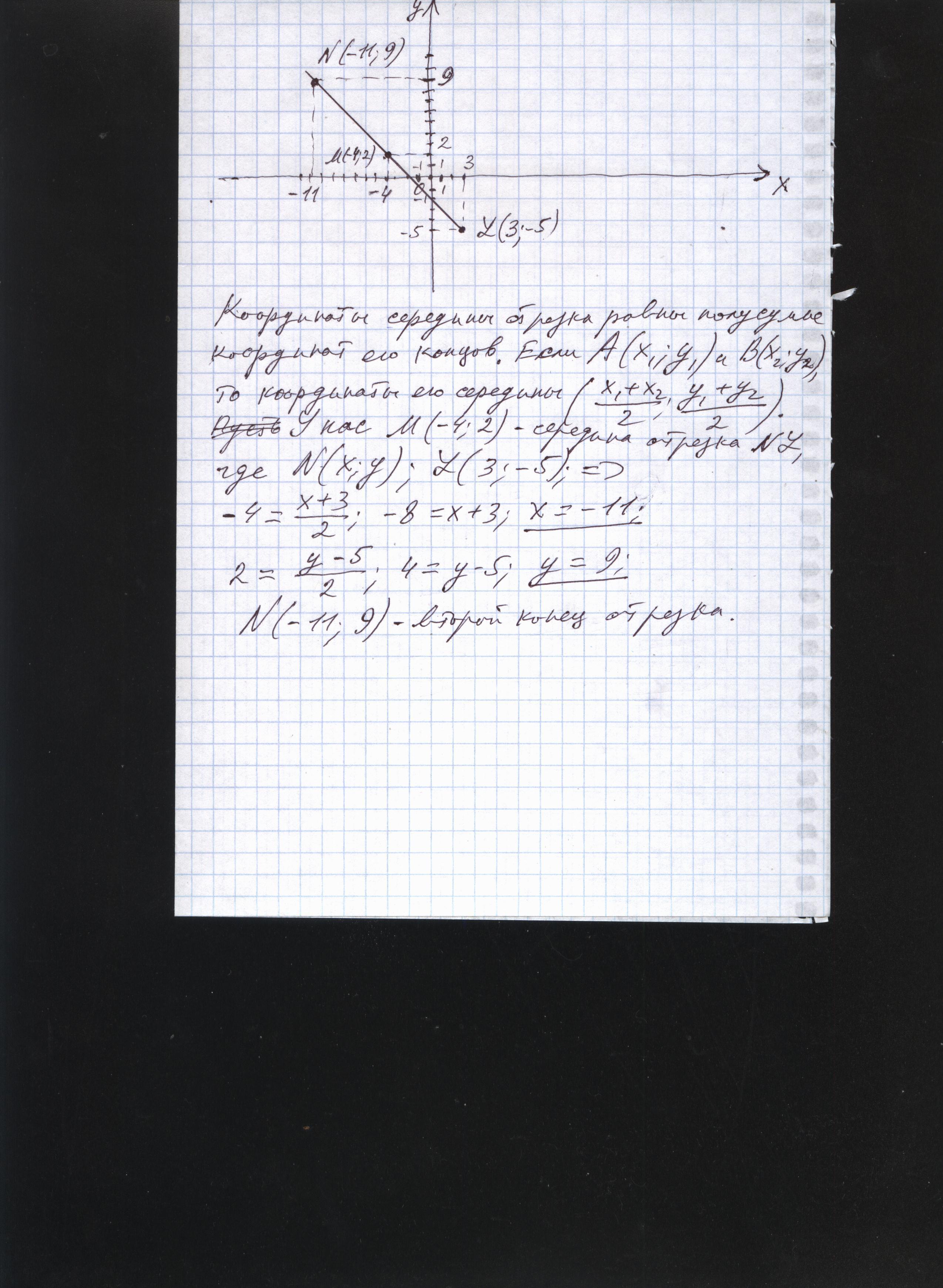 Точка М(-4;2)является серединой отрезка ,один из концов которого находится в точке L(3;-5).В какой точке расположен второй конец отрезка?