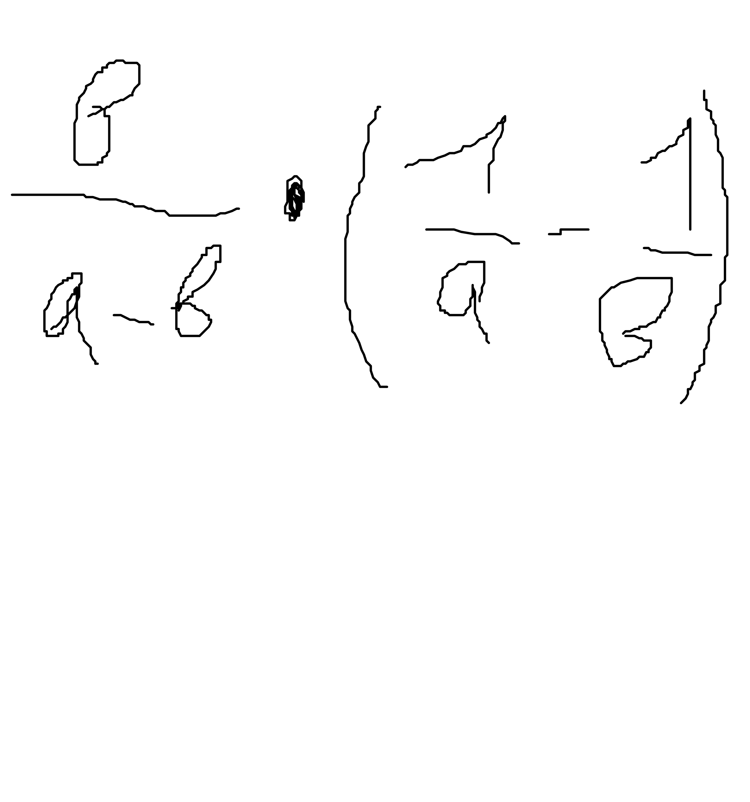 displaystyle  frac{b}{a-b}* (frac{1}{a}- frac{1}{b})= frac{b}{a-b}*( frac{b-a}{ab})= frac{b(b-a)}{(a-b)*ab}= frac{-b(a-b)}{(a-b)*ab}=- frac{1}{a}