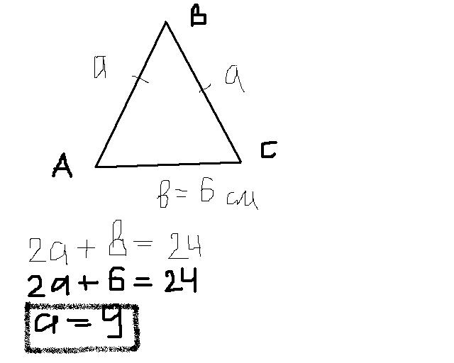 Тогда сумма двух боковых сторон: 24 -6 = 18