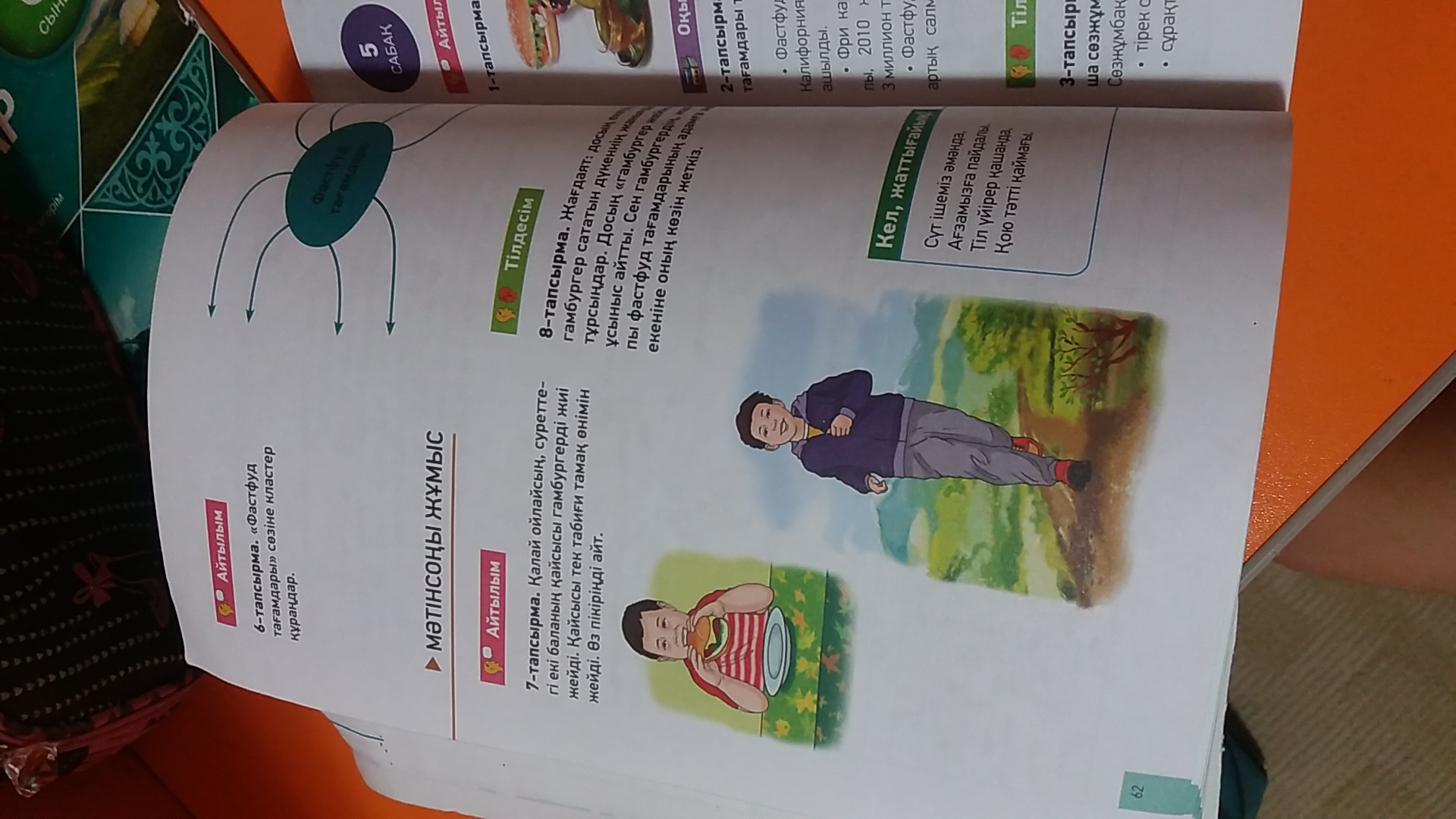 менің ойымша бірінші суреттегі бала гамбургерди көбірек жейді.Себебі,ол семіз гамбургер адамды семиртеди.Ал екінші суреттегі бала салауатты өмір салтын ұстанады.