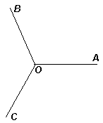 Три луча можно расположить требуемым образом, например, если углы между соседними лучами с началом в точке О равны по 120 °