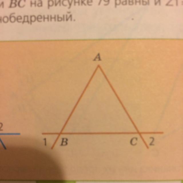 АВ=АС, значит ΔАВС равнобедренный. Углы при основании равнобедренного треугольника равны. ∠АВС=∠АСВ. ∠1=∠АВС (как вертикальные), ∠2=∠АСВ (как вертикальные) Значит ∠1=∠2