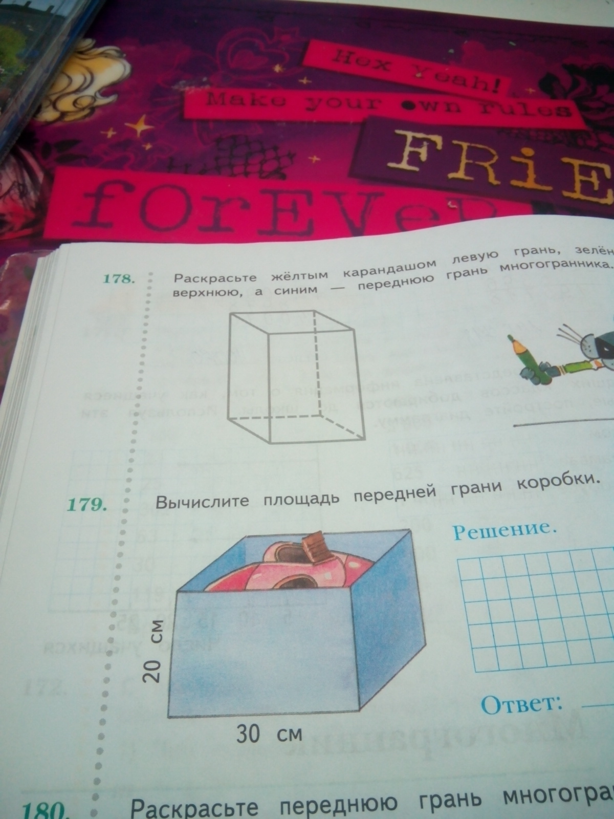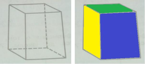 раскрасьте жёлтым карандашом левую грань, зелёным-верхнюю а синим переднюю грань многогранника