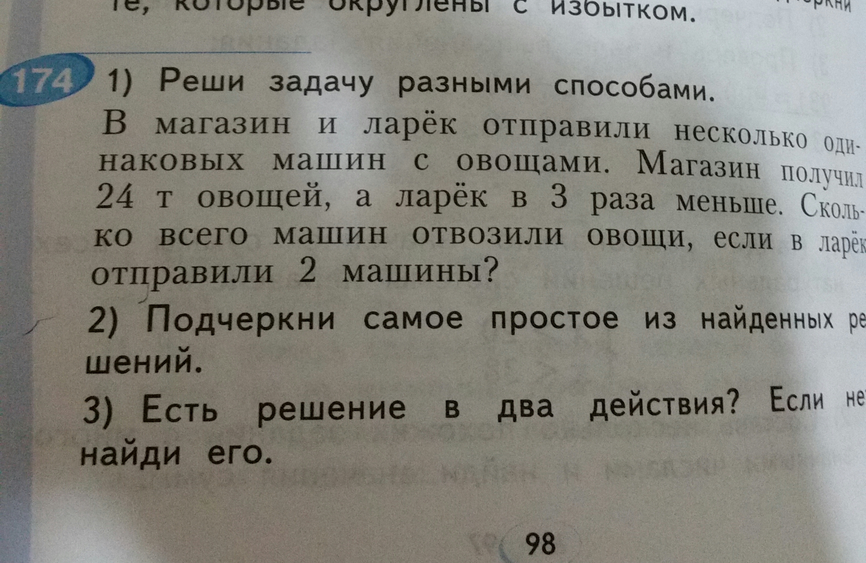 3)24:4=6м-отвезли в магазин овощи