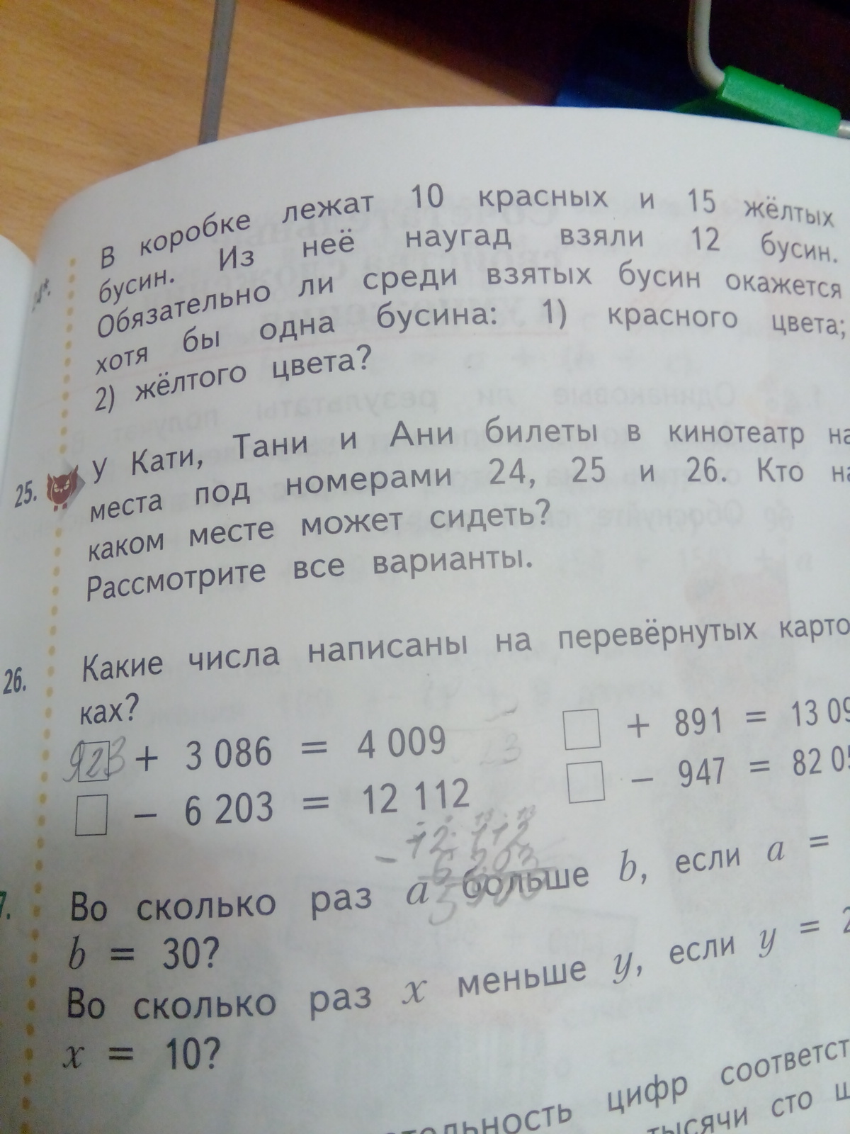 3 девочки и 3 места. Катя-24 Таня-25 Аня-26, Катя-24 Таня-26 Аня-25, Катя-25 Таня-24 Аня-26, Катя-25 Таня-26 Аня-24, Катя 26 Таня 25 Аня 24, Катя 26 Таня 24 Аня 25. Ответ получилось 6 случаев