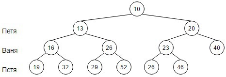 Два игрока, Петя и Ваня, играют в следующую игру. Перед игроками лежит куча из 10 камней. Игроки ходят по очереди, первый ход делает Петя. За один ход игрок может добавить в кучу три камня или увеличить количество камней в куче в два раза. У каждого игрока, чтобы делать ходы, есть неограниченное количество камней. Игра завершается в тот момент, когда количество камней в куче становится не менее 30. Победителем считается игрок, сделавший последний ход, то есть первым получивший кучу, в которой будет 30 или больше камней. Как должен ходить Петя чтобы выиграть? Как должен ходить Ваня чтобы выиграть? Нарисуйте дерево.