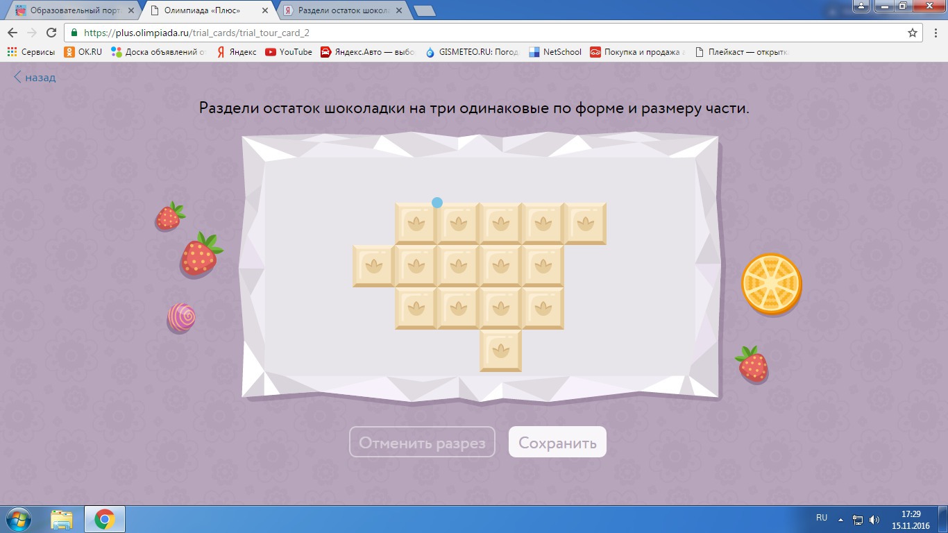 Поскольку здесь 15 долей, значит делить надо на фигуры по