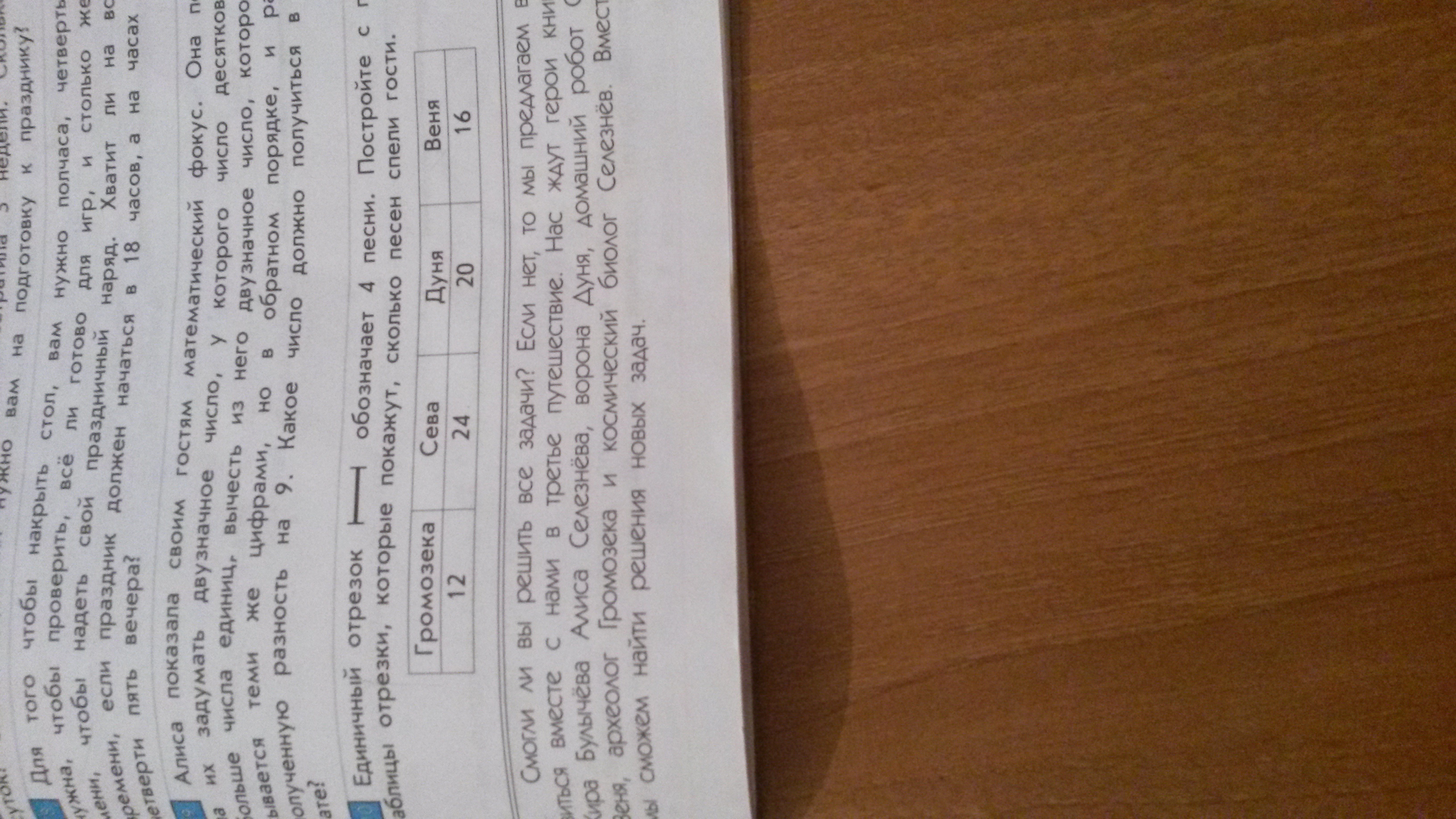 Единичный отрезок обозначает 4 песни. Постройте с помощью таблицы отрезки, которые покажут, сколько песен спели гости.