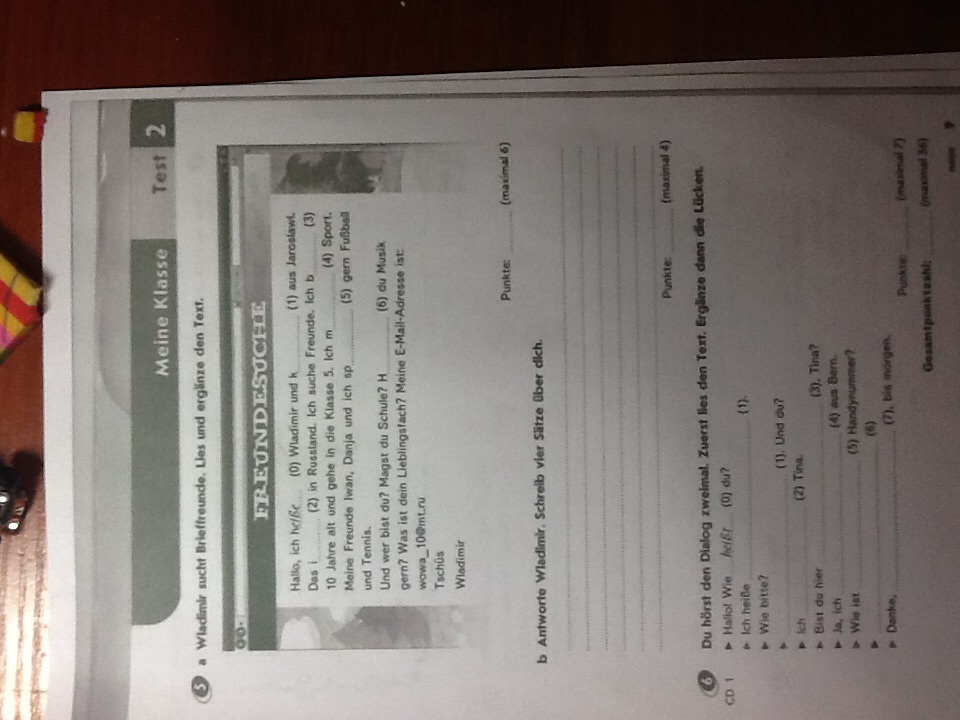 Хорошо! 1) Komme 2) ist 3) bin 4) mag 5) spielen 6) Horst (над о две точки)