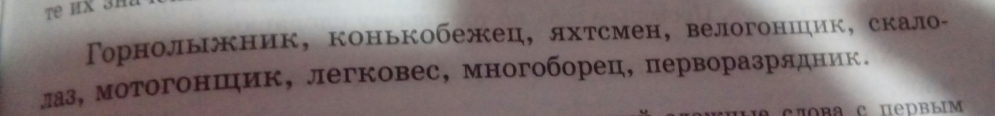 Горнолыжный, конькобежный, яхтсменский, велогонка, скалолазание, мотогонка, легковесный, многоборье, перворазрядный.