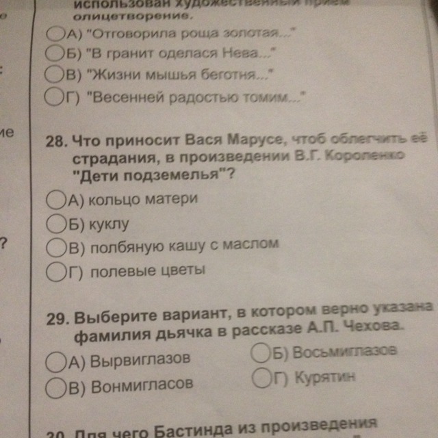 28 задание ,б) куклу , 29 задание , г) Лурятин
