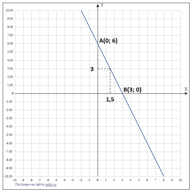 Если x = 0, то y = -2*0+6 = 6. Точка А(0; 6)