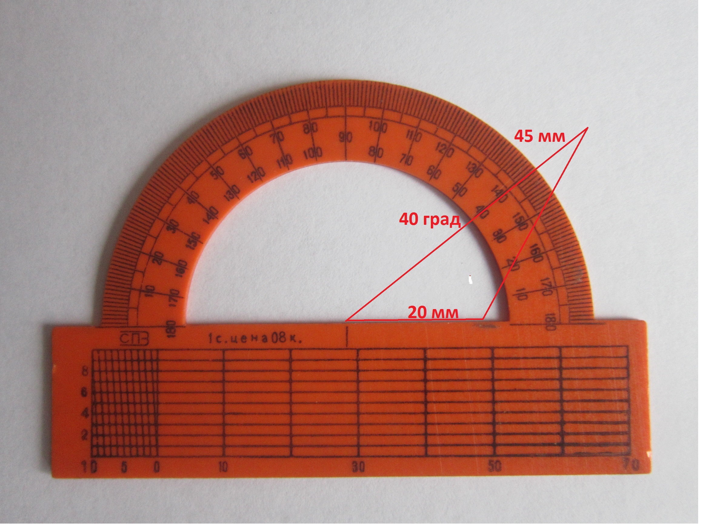 транспортира постройте треугольник если две стороны его равны 2 сантиметра 4 сантиметра 5 милиметра а угол между ними 140 градусов
