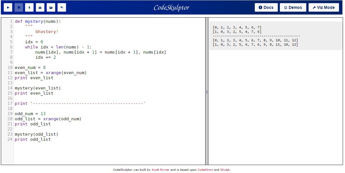 Напишите программу, которая переставляет соседние элементы массива (1-й элемент поменять с 2-м, 3-й с 4-м и т.д. Если элементов нечетное число, то последний элемент остается на своем месте).