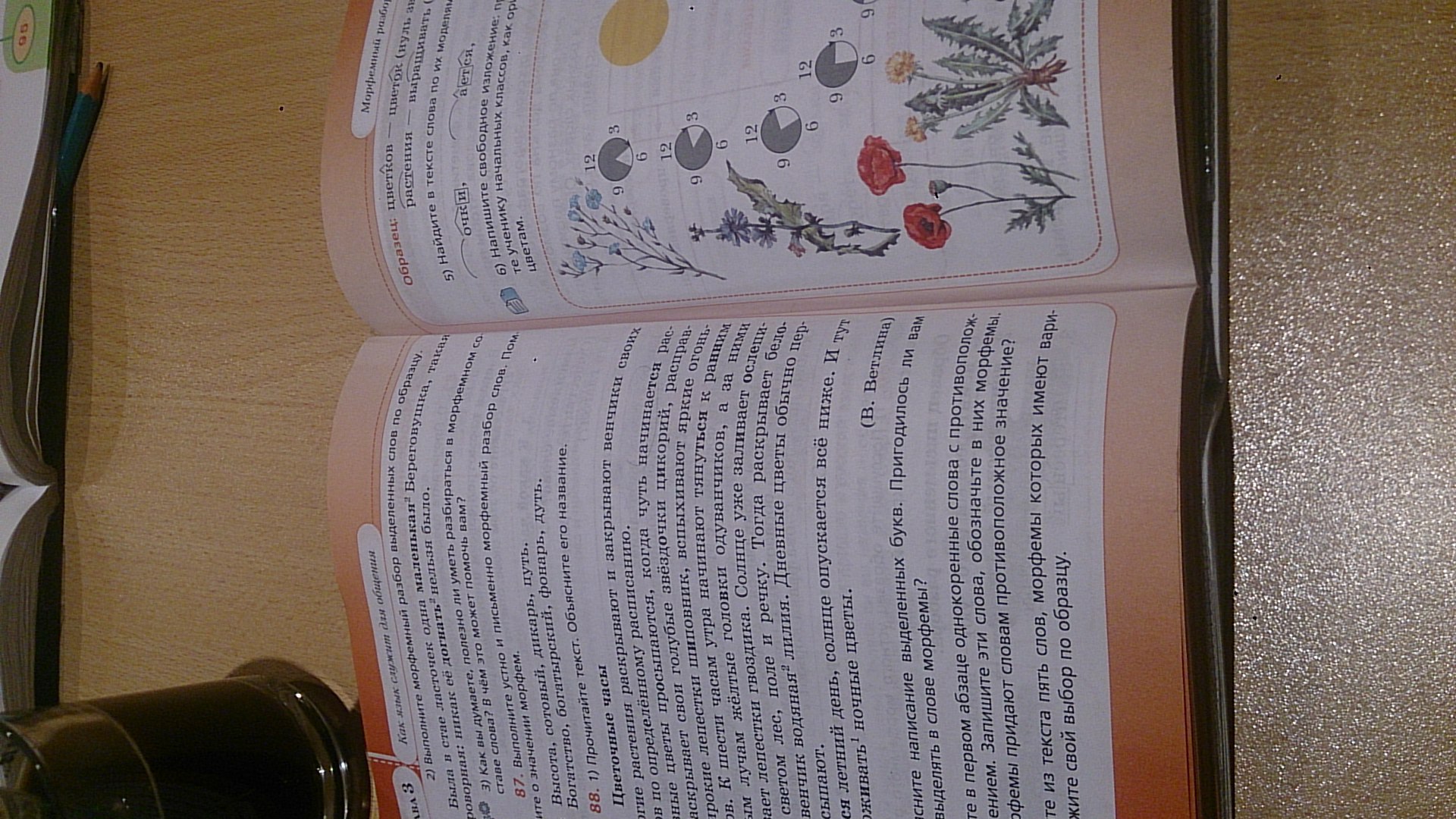 прочитайте текст. объясните его название. цветочные часы. Многие растения раскрываются