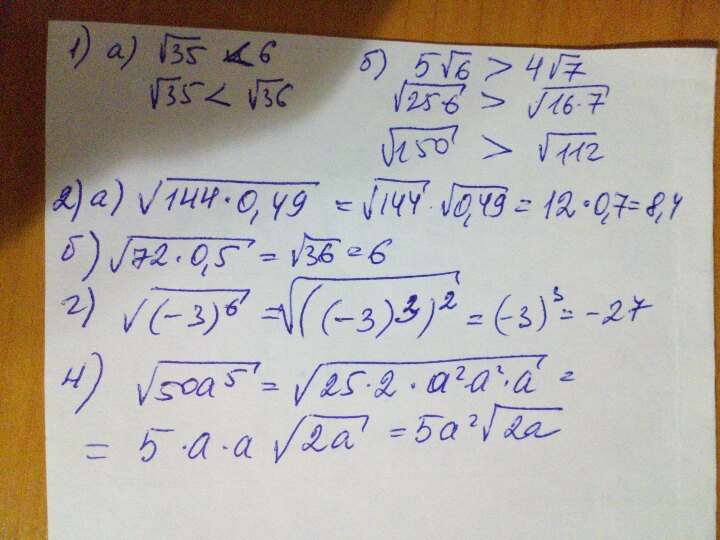 1. а)корень из 35= 5,9 - корень из 35 меньше 6