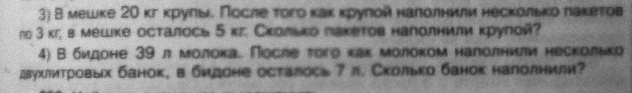 (20-5) : 3=15:3=5 пакетов наполнили крупой