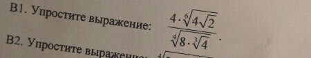 2^2*(2^2) ^{1/6} *2 ^{1/12} /[(2^3) ^{1/4} *(2^2) ^{1/12} ]=2 ^{24/12+4/12+1/12-9/12-2/12} =2 ^{18/12} =2 ^{3/2} =2 sqrt{2}
