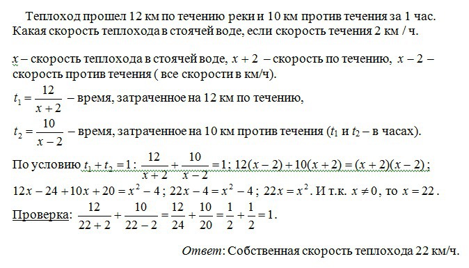 Какая скорость теплохода в стоячей воде, если скорость течения 2 км / ч