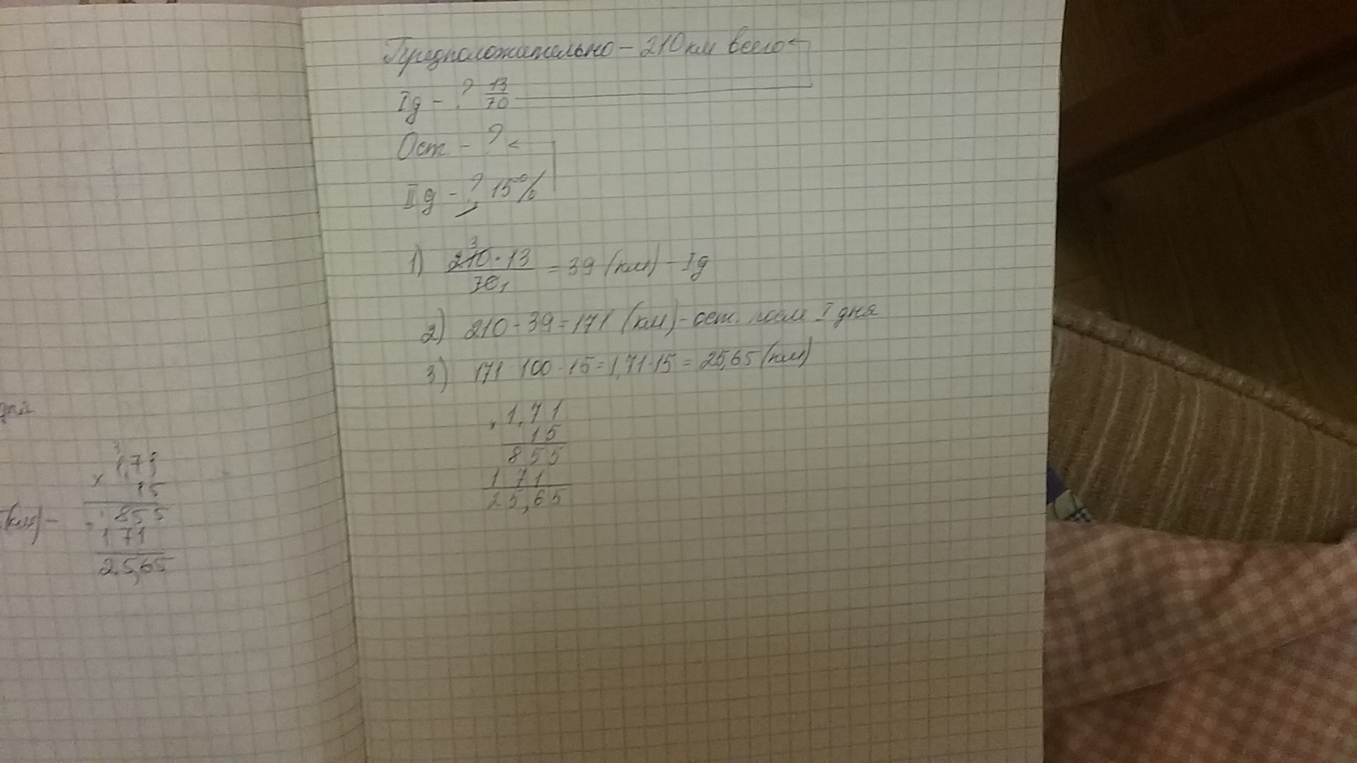 3) 171/100*15=25,65 км