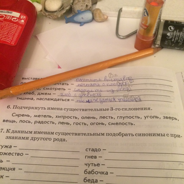 Сирень,метель,хитрость,лесть,глупость,вещь,радость,лень,смелость.