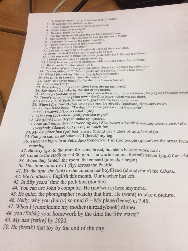 поставить глаголы в скобках в правильной форме